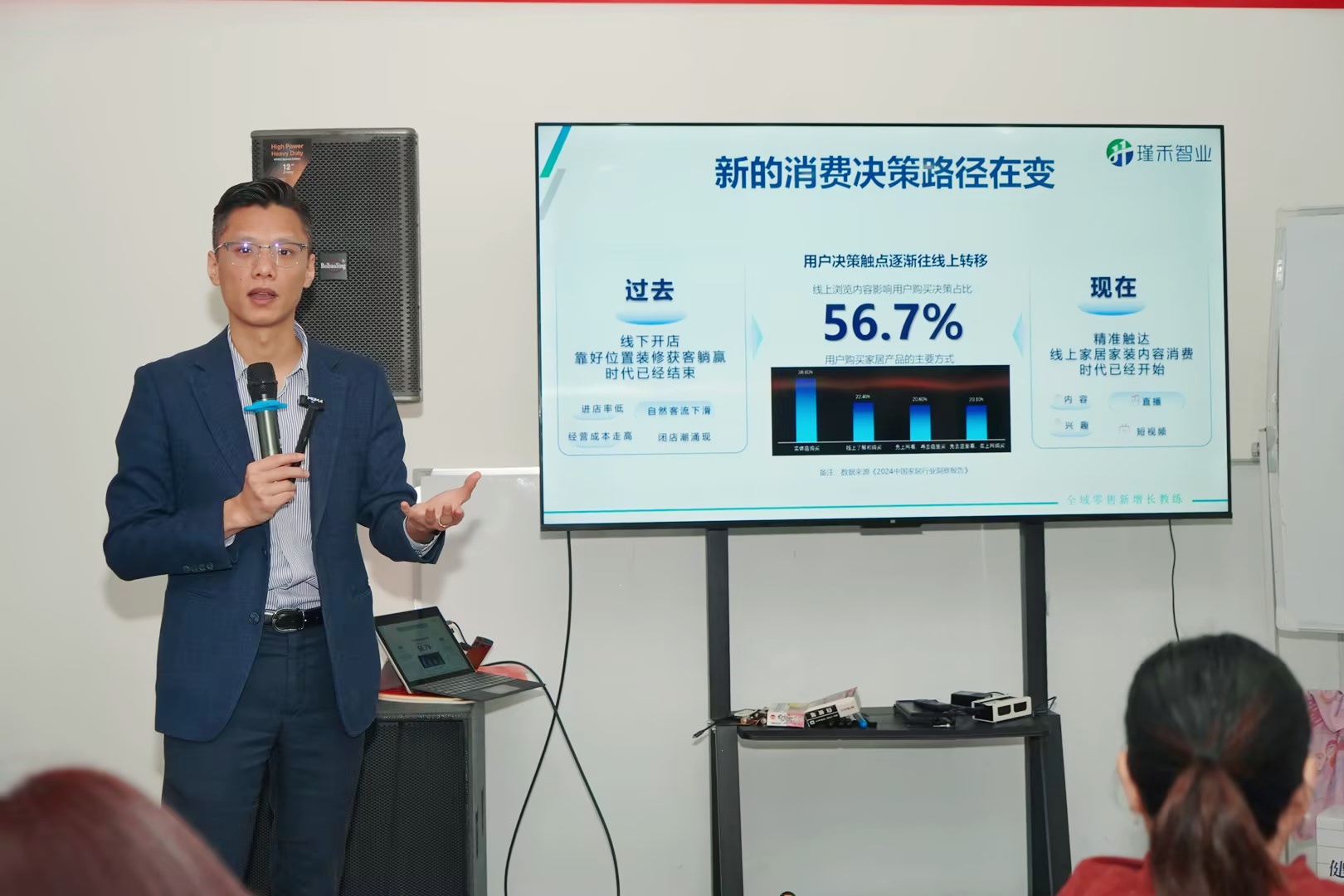 下午的新媒體實戰運營培訓中,蒙太奇新媒體運營總監唐群分別針對抖音、小紅書、視頻號這三個平台的基礎知識、運營規則以及廣告投放技巧等理論知識進行了分享。同時,還結合了蒙太奇在各平台賬號從0到1的成長實戰經驗,為經銷商家人們進行了全麵且深入的授課。助力各經銷商打通各平台的底層邏輯,從而更好地擁抱新媒體平台。