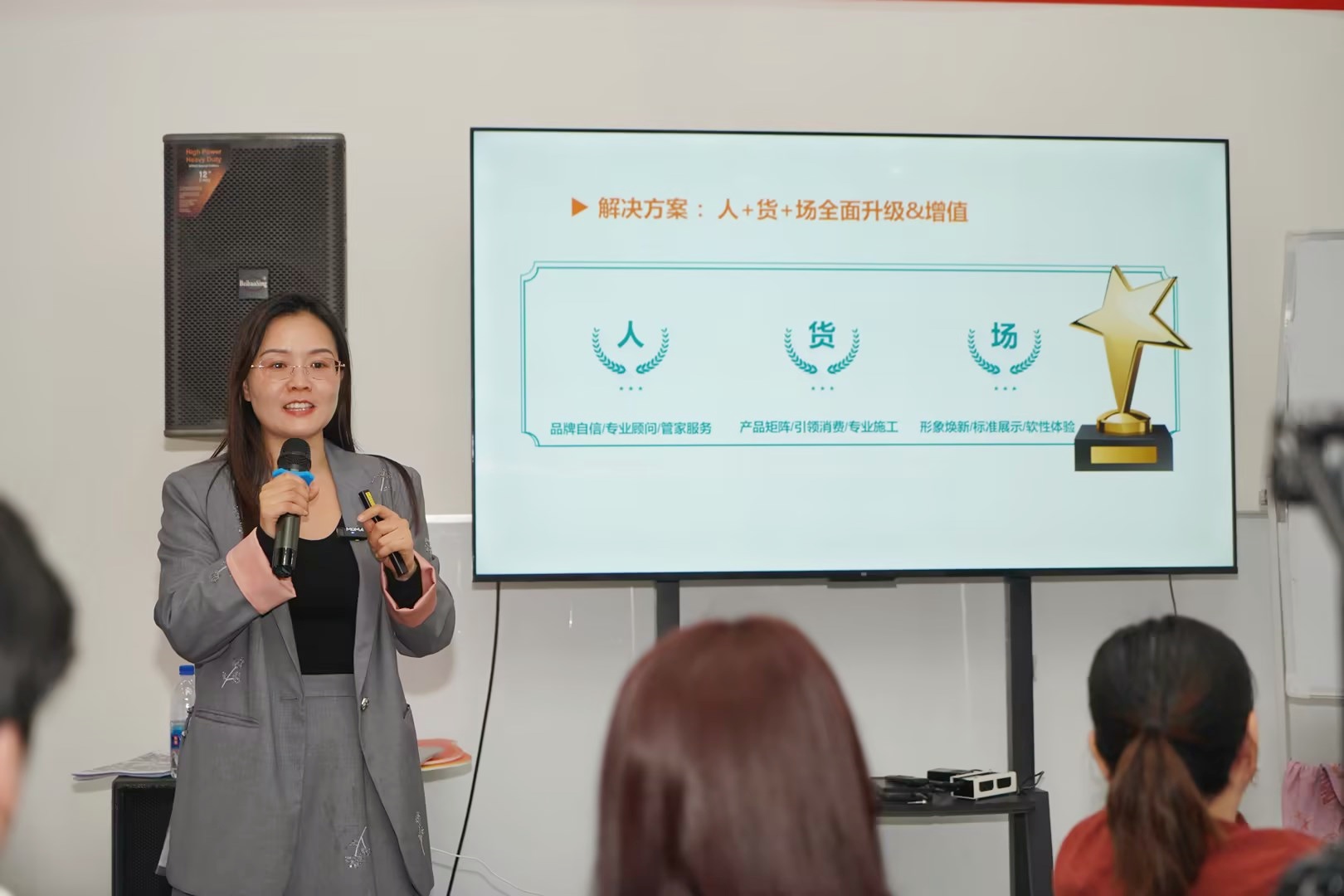 跨年大促活動中,粵閩瓊將三地聯動年末狂歡,共同探索終端門店O2O新營銷模式。因此,在特訓營課程第二天,蒙太奇品牌聯合創始人、藝術塗料最美老板娘呂芳方,聚焦“消費降級與行業內卷下門店強勢動銷的策略”,從人、貨、場三個維度,融合線上線下成交邏輯,為現場的經銷商家人們進行了專題培訓,指導經銷商如何有效拓寬獲客渠道、提升轉化效率。