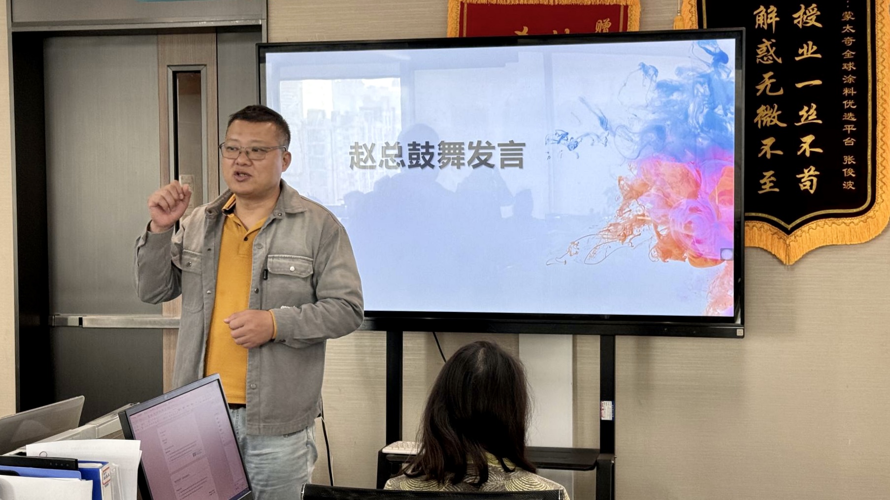 隨後,蒙太奇聯合創始人、藝術塗料最美老板娘呂芳方女士發表致辭,引領全體員工針對2025年蒙太奇奮鬥目標進行宣誓。