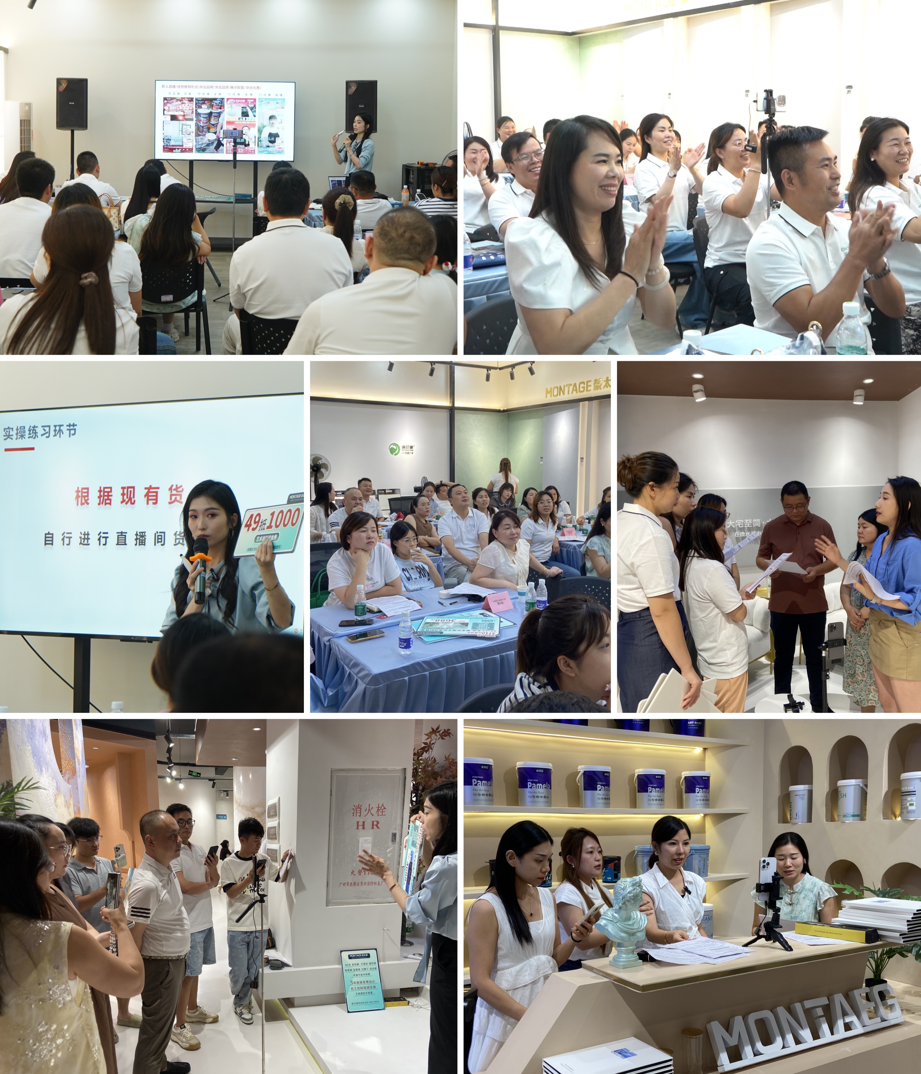 為助力經銷商快速適應數字化浪潮,蒙太奇於8月啟動"星火燎原流量實訓營",針對核心經銷商開展專項培訓。課程聚焦短視頻創意策劃、本地化直播運營、精準流量獲取及數據分析優化四大核心模塊,通過理論授課+實操演練的方式,係統提升經銷商的數字化營銷能力。