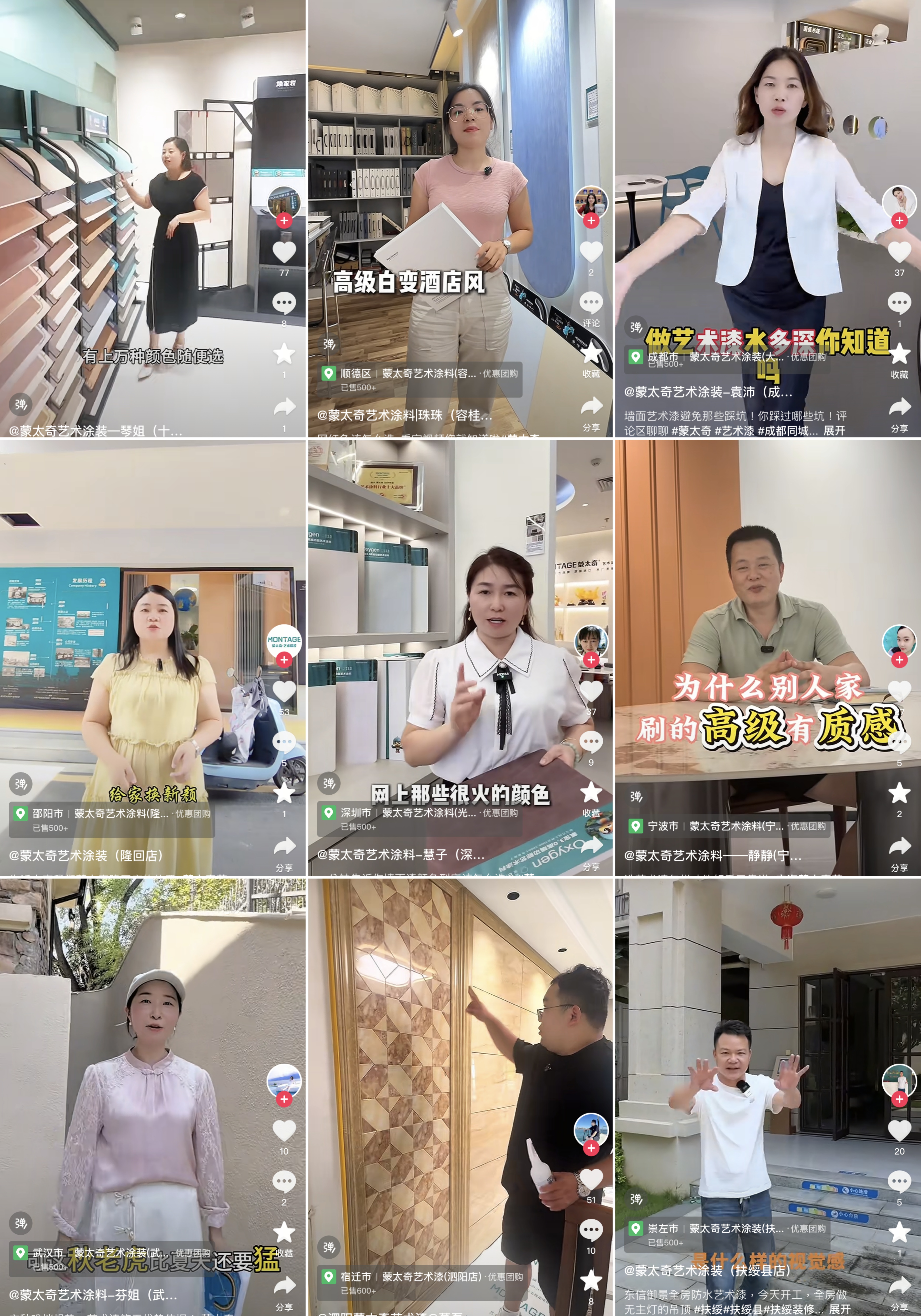 此次登榜抖音TOP1、七夕直播大捷,隻是蒙太奇數字化戰略的階段性成果。未來,品牌將繼續深化 “星火燎原流量實訓營”,針對更多經銷商開展短視頻運營、直播技巧、本地流量轉化等專業培訓,不斷完善賦能體係。我們始終堅信,在數字化浪潮下,隻有與經銷商攜手成長、共享資源,才能一起抓住新機遇、搶占新賽道,讓蒙太奇的藝術塗料走進更多家庭,共同書寫行業數字化轉型的新篇章!