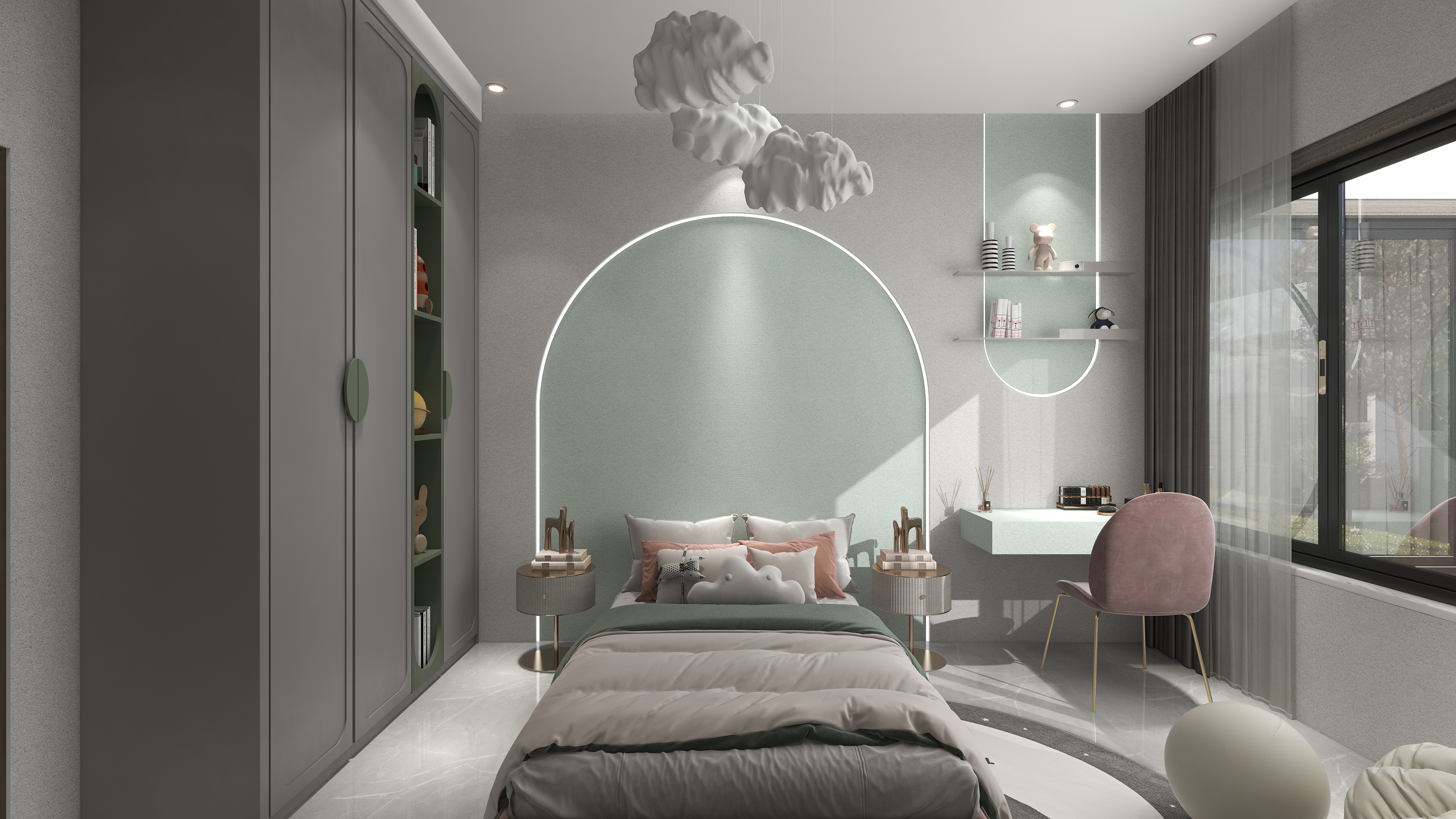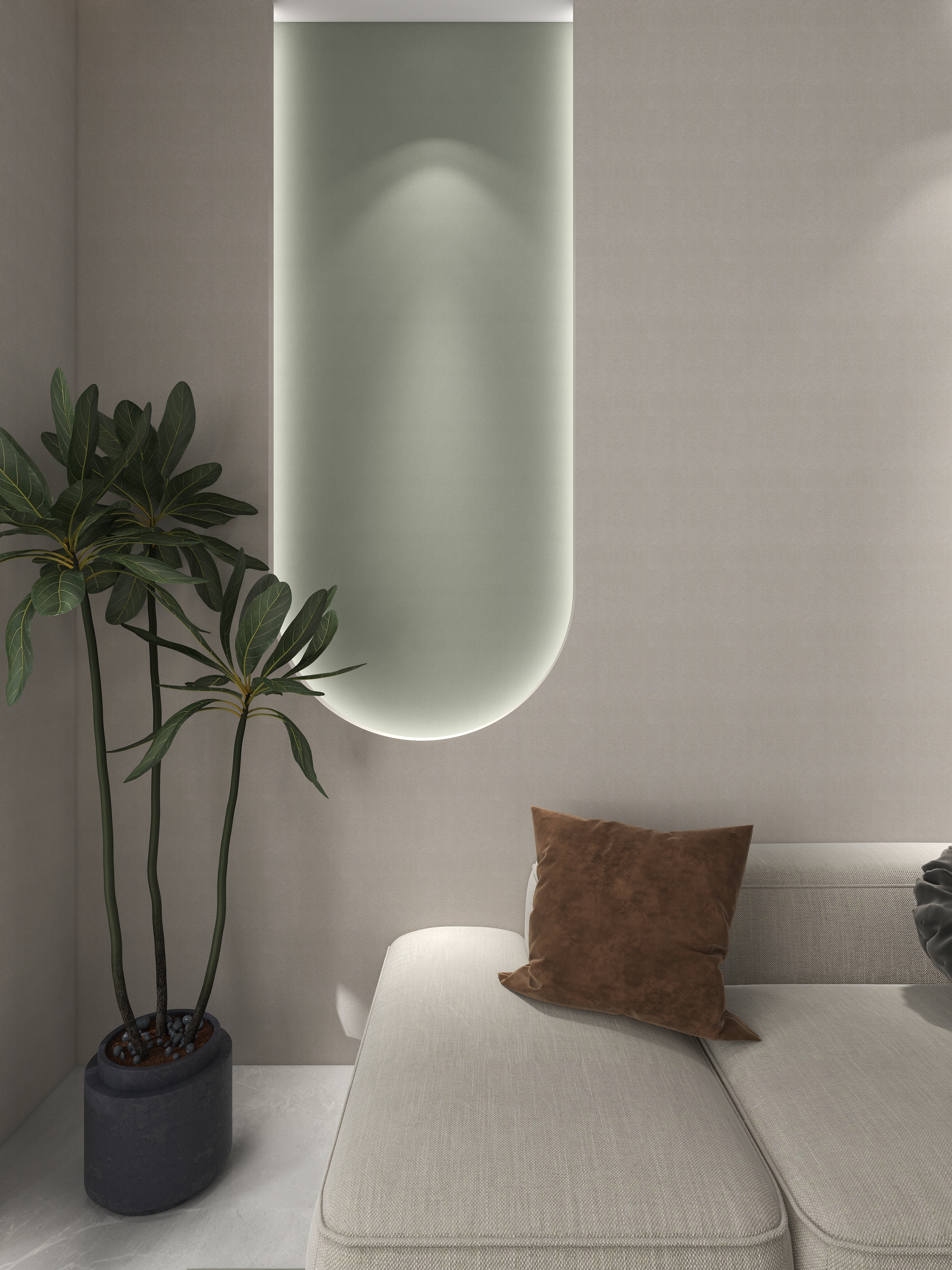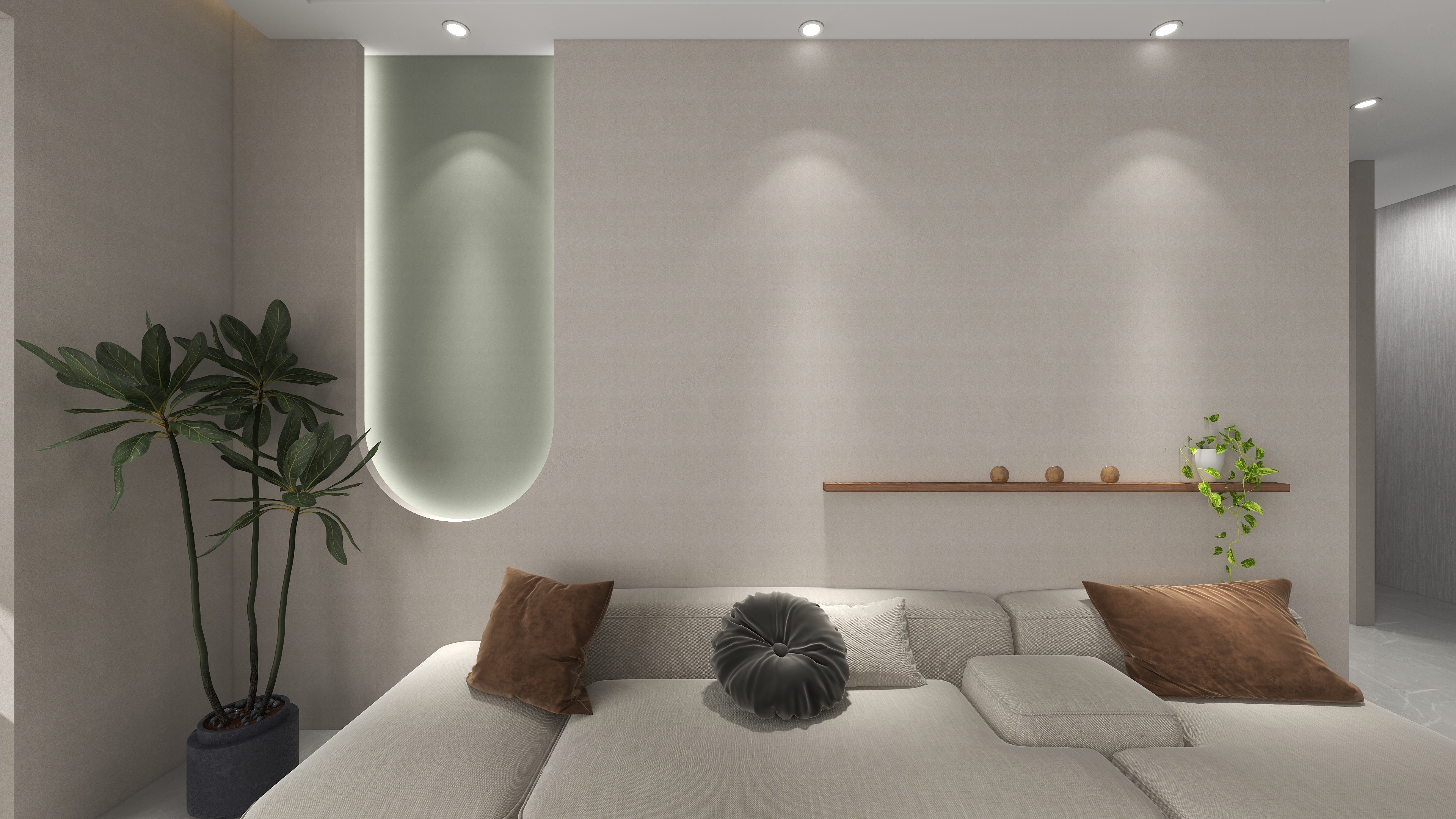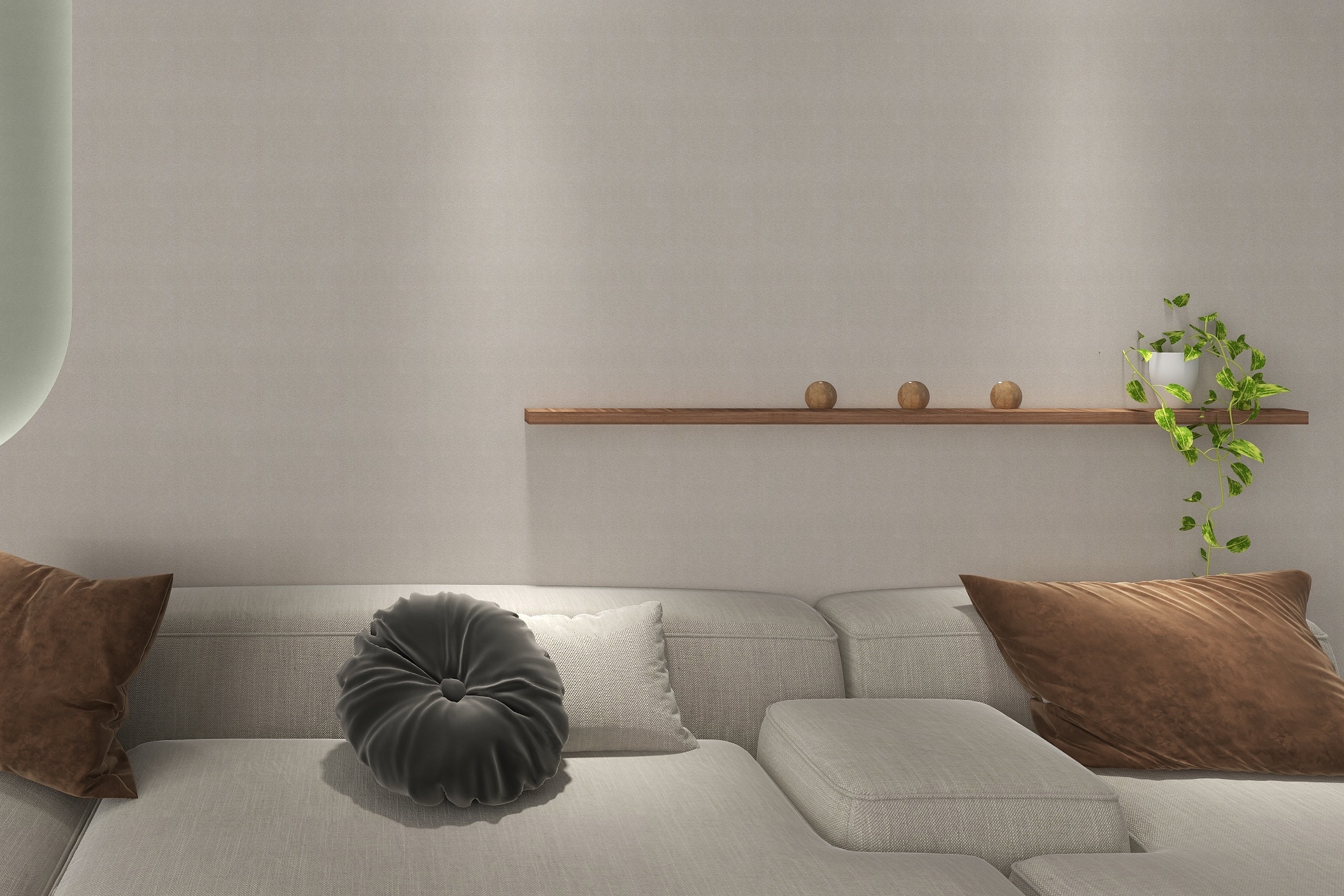 客廳作為高頻使用的場所,是微陶石的“技術展場”。因其具有高硬度,能抵禦日常各種小磕碰,也不會留下使用痕跡。這便是微陶石賦予空間的具象化:剛柔並濟的守護,讓每個角落都成為經得起時光打磨的生活美學。
