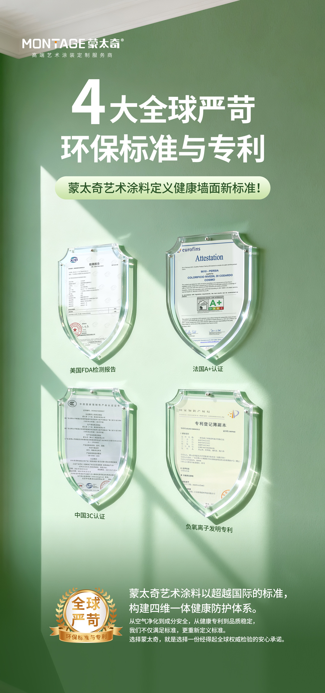 蒙太奇以四大權威認證,鑄就居家“森林氧吧”健康牆麵新標準!