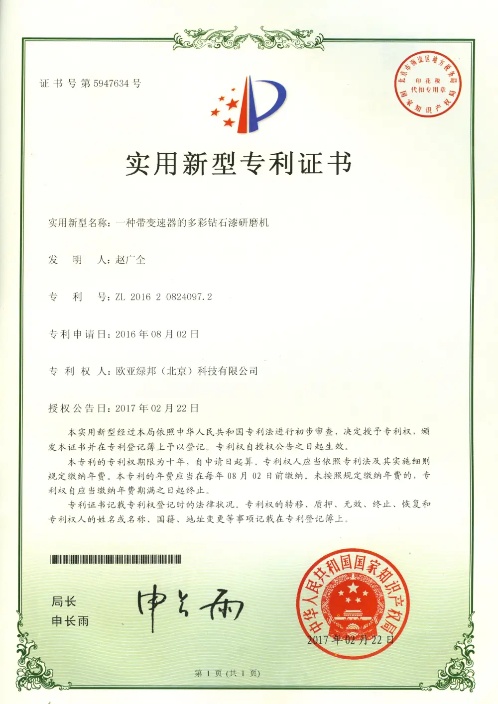 專利證書