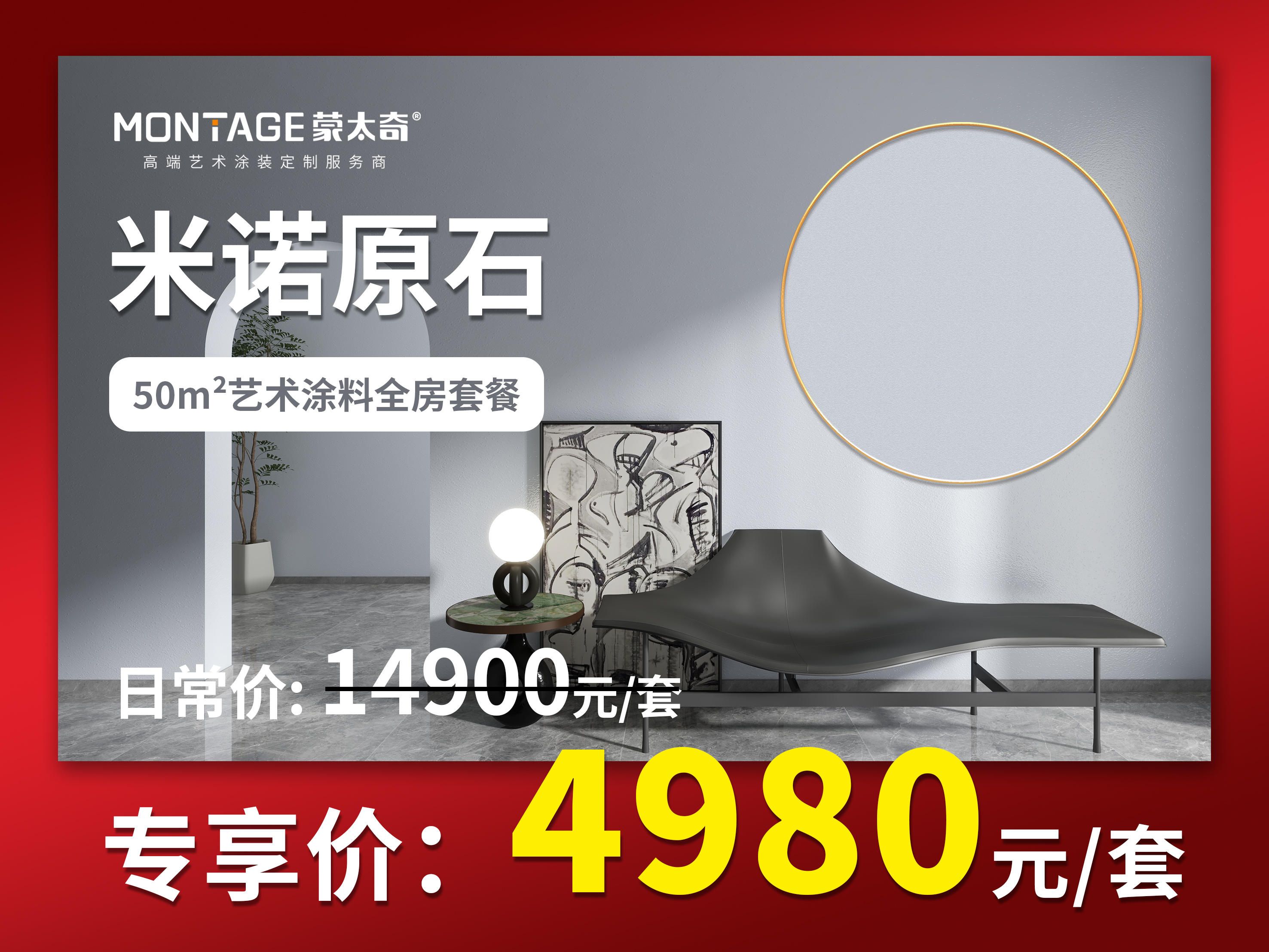 不僅爆品,連新品的福利同樣給力,50㎡米諾原石藝術塗料全房套餐,工廠補貼價僅4980元/套,搶到即賺到。快快鎖定11月22日至23日每晚18點30分的蒙太奇大場直播間,輕鬆拿下全屋藝術塗裝吧!