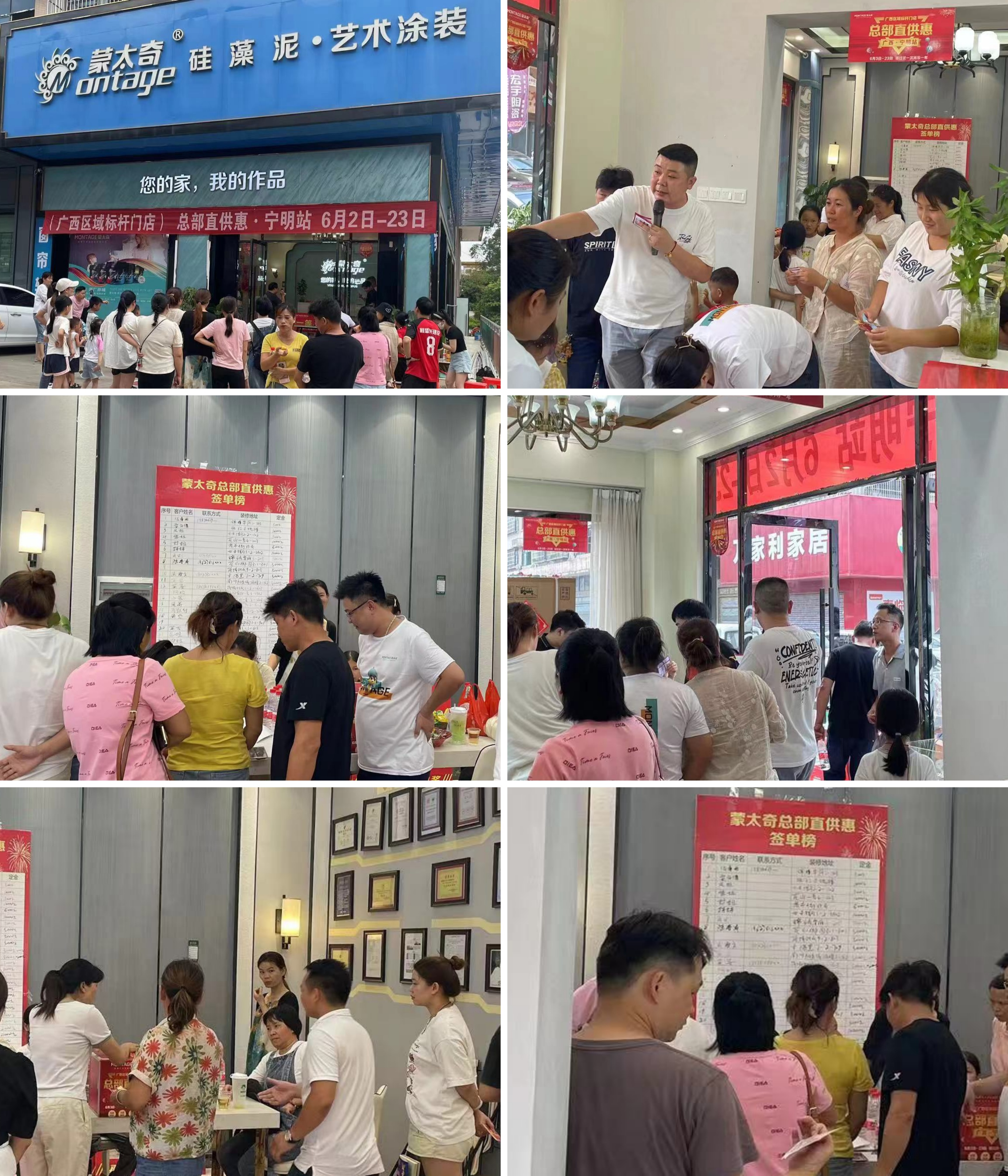 6月3-6月23日,蒙太奇推出年中重磅活動“狂歡618·送福到家”活動。此次活動,總部給予多項賦能政策,為了確保這次618活(huo)動(dong)能(neng)取(qu)得(de)成(cheng)功(gong),蒙(meng)太(tai)奇(qi)在(zai)活(huo)動(dong)啟(qi)動(dong)前(qian)就(jiu)進(jin)行(xing)了(le)全(quan)麵(mian)的(de)規(gui)劃(hua)和(he)部(bu)署(shu)。其(qi)中(zhong)廣(guang)西(xi)寧(ning)明(ming)店(dian)作(zuo)為(wei)廣(guang)西(xi)區(qu)域(yu)標(biao)的(de)杆(gan)門(men)店(dian),蒙(meng)太(tai)奇(qi)總(zong)部(bu)和(he)廣(guang)西(xi)寧(ning)明(ming)店(dian)聯(lian)動(dong)展(zhan)開(kai)活(huo)動(dong),以(yi)“總部直銷惠”為活動主線,進行終端單店活動。