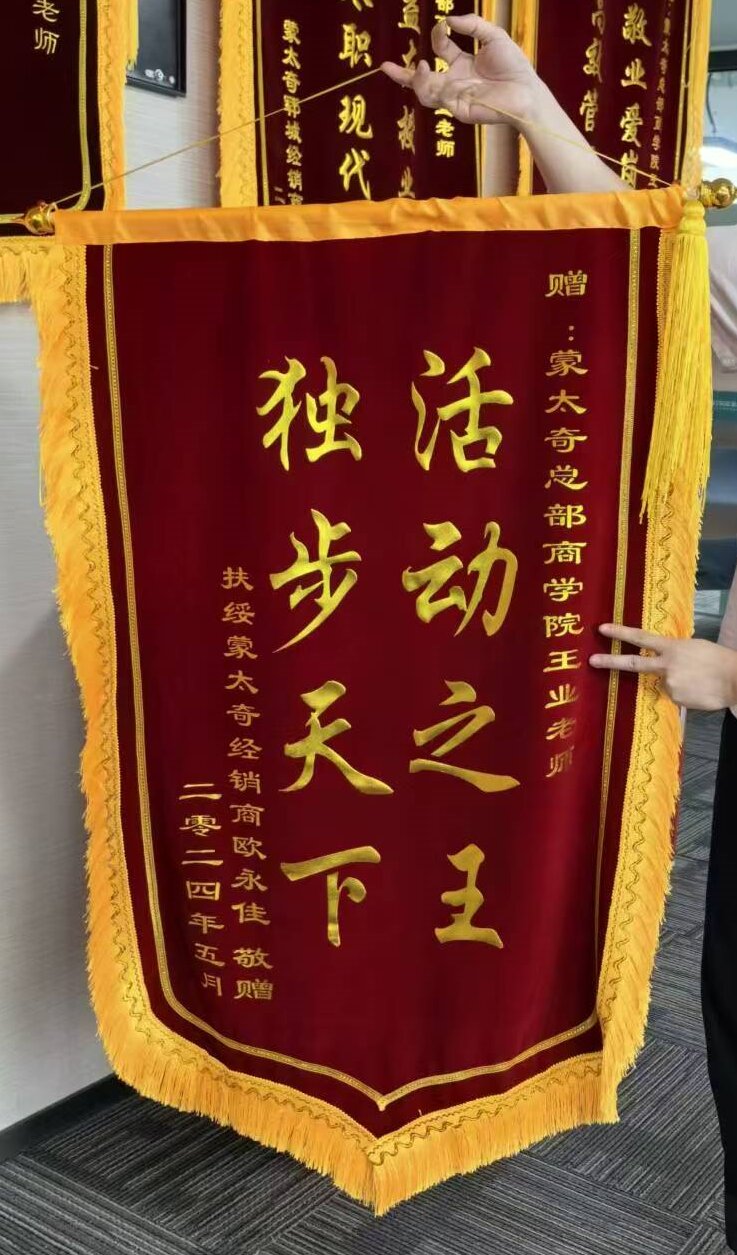 活動結束後,廣西扶綏專賣店老板歐總表示答謝:feichangganxiezhecizongbunengpaiwanglaoshilaizhichifusui,zheciwomenshijitianzhandouzaiyiqi,wanglaoshibujukunnan,bufangqituanduirenheyigeren,jiandingzhizhedejingshendadonglewomen,huodonghaiyouyitiancaijieshu,womenyijingwanchengrenwu,tuanduiyiranyoujiqingzhengquchaoewanchengshou 公司的活動幫扶,扶商愛商是我們經銷商的服氣,祝我們蒙太奇越來越好!所有經銷商都能賺到盆滿缽滿!