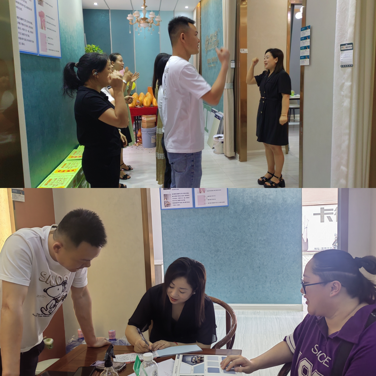 本次品牌終端賦能行活動,旨在助力門店突破動銷瓶頸,快速搶占市場,在當地一眾藝術塗裝門店中脫穎而出。王業老師通過資源梳理、銷售話術培訓、簽單技巧指導、新媒體引流示範等多方位賦能,基於當地藝術塗料市場的競爭格局和消費者消費需求,為門店提供了一套極具針對性、操作性和有效性的獲客、邀約、銷售與簽單解決方案,精準匹配並鎖定目標客戶群體,帶動終端聚勢衝刺。